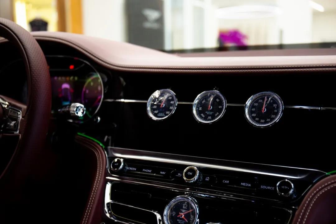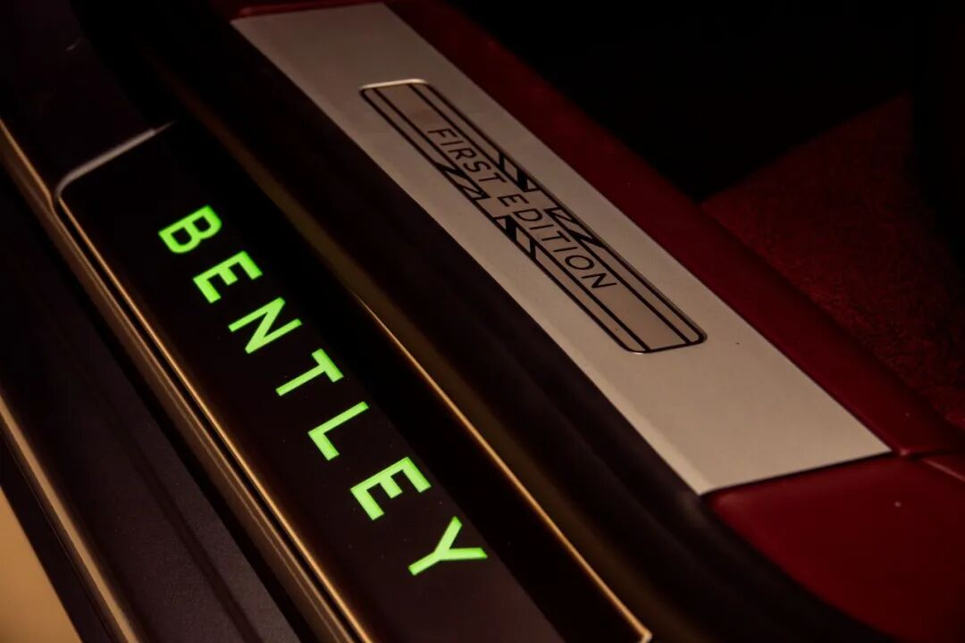 打开车门,可以看见门槛位置有宾利的英文字母灯亮起,水绿色的灯光让人联想到英伦腕表的夜光模式,仅仅只是迎宾踏板灯这么简单的设备,宾利也用自己独特的品味营造出了属于自己的质感。