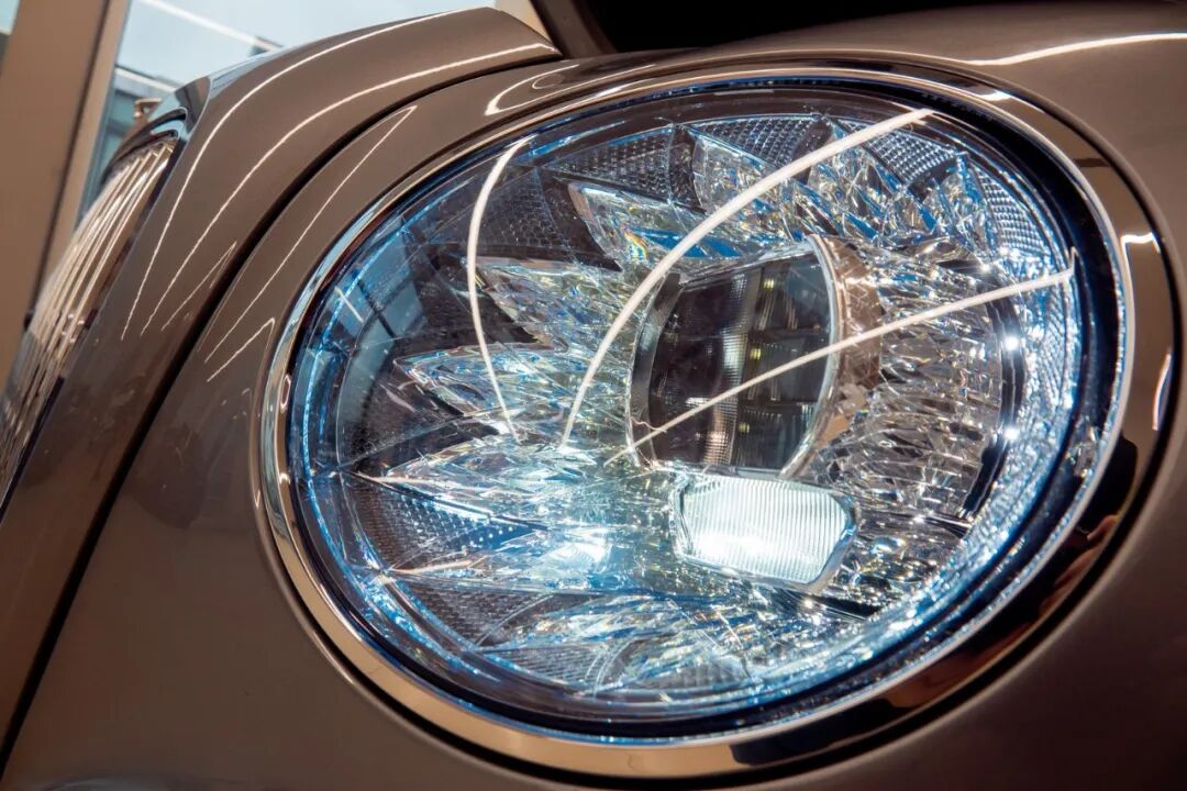 全新飞驰延续了传统的四圆灯造型,加入矩阵式LED大灯技术,内部皇冠造型的水晶非常惊艳。