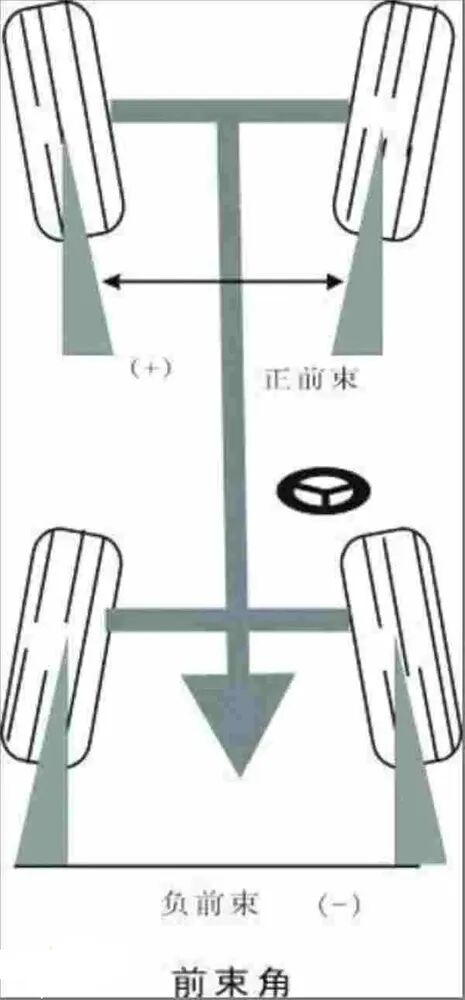 上文提到的“斜”一点就是倾角,“八字”一点就是前束,主销后倾角太复杂现在先不讲。