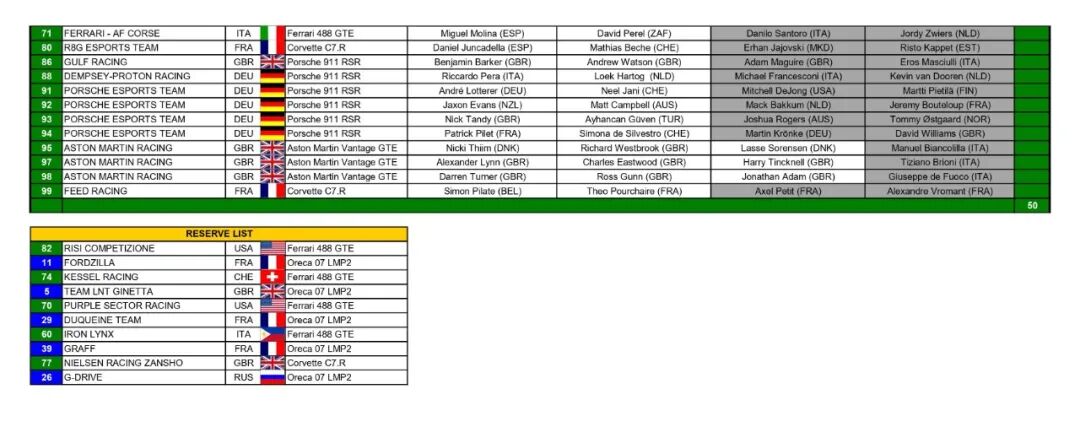 虚拟勒芒24小时 | 完整版参赛名单释出 众星云集齐聚线上
