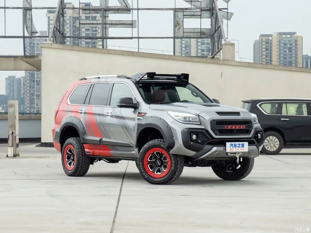 宏观上的少说吧,还是看看车。所谓劳伦斯极星版,据说是劳伦斯设计的。个人认为最成功的是车头,棱角分明的整体替换式前杠,给H9带来巨大的变化,肌肉感暴增,很有美国皮卡硬汉感,但却有多少北美TRD 4RUNNER的影子。不同的是H9用黑色强调自己的嘴巴是黑的,比前者更强调个性。
