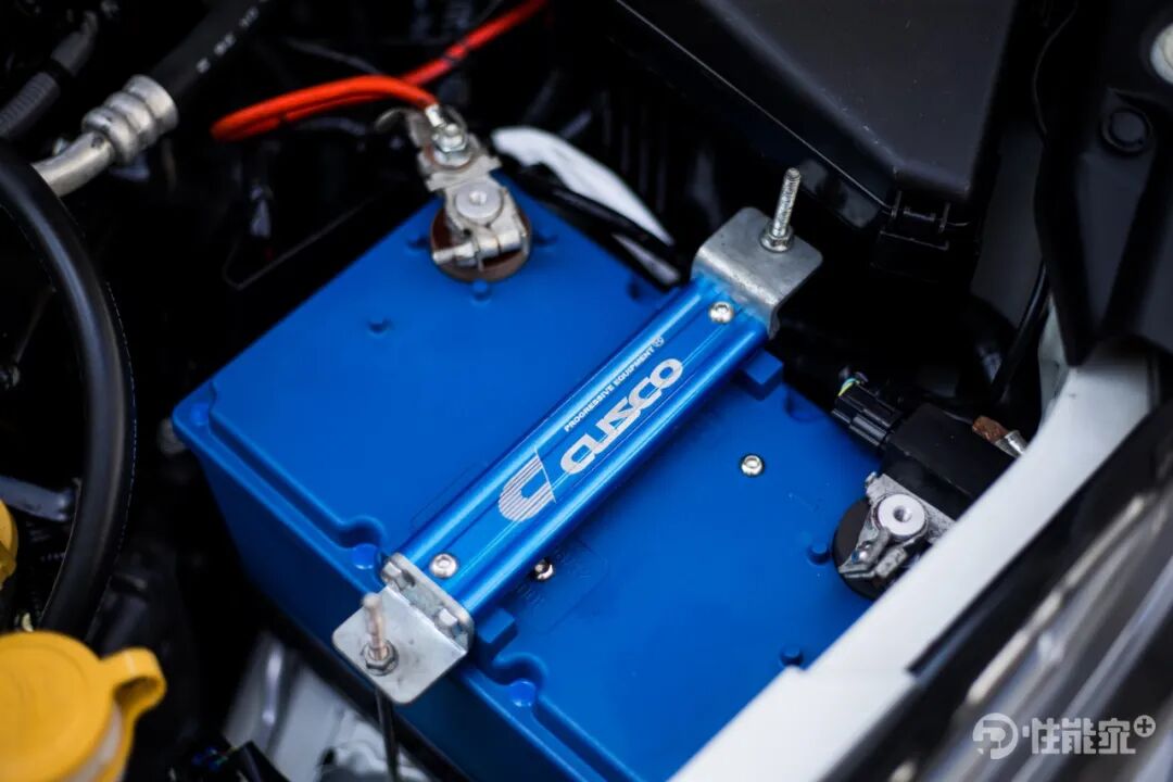 在车内,音响也同样经过了升级,不仅更换了音质更好的喇叭,还在主驾的座椅底下加入了一台DSP功放,为保证车内电流的稳定性,原车的铅酸蓄电池被CUSCO超级电容取代,不仅比铅酸电池拥有更好的容量、充电速度、循环次数和稳定性,更轻的超级电容放在车头也能有效减少车头重量。