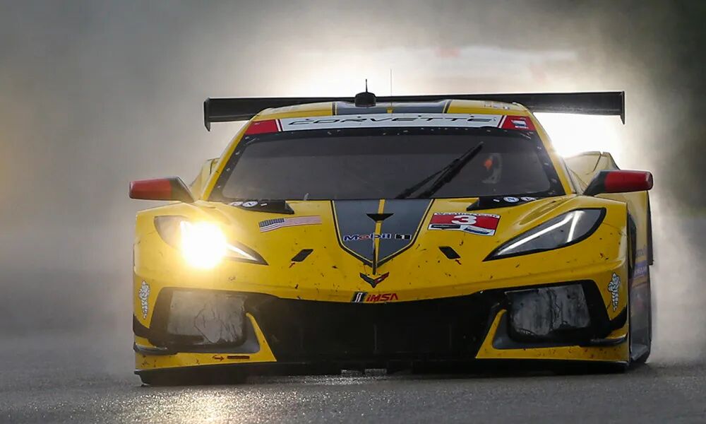 GTLM三大厂商的激战中,组别领先多次易主。保时捷GT北美厂队杆位发车的912号Laurens Vanthoor/Earl Bamber车组在雨水到来之前掌握着主动权,但湿滑的赛道上Bamber没能控制住搭载干胎的912号保时捷911 RSR-19,赛车直接在主直道失控高速滑入砂石缓冲区。宝马RLL车队John Edwards/Jesse Krohn车组驾驶的24号宝马M8 GTE曾在红旗之后占据领先,但比赛最后时刻再次加大的雨势让24号车组和另一辆保时捷911 RSR-19在同一弯角冲出赛道。稳中求进的科尔维特车队轻松完成名次晋升,两辆C8.R包办冠亚并为美国厂商带来了一波三连胜。