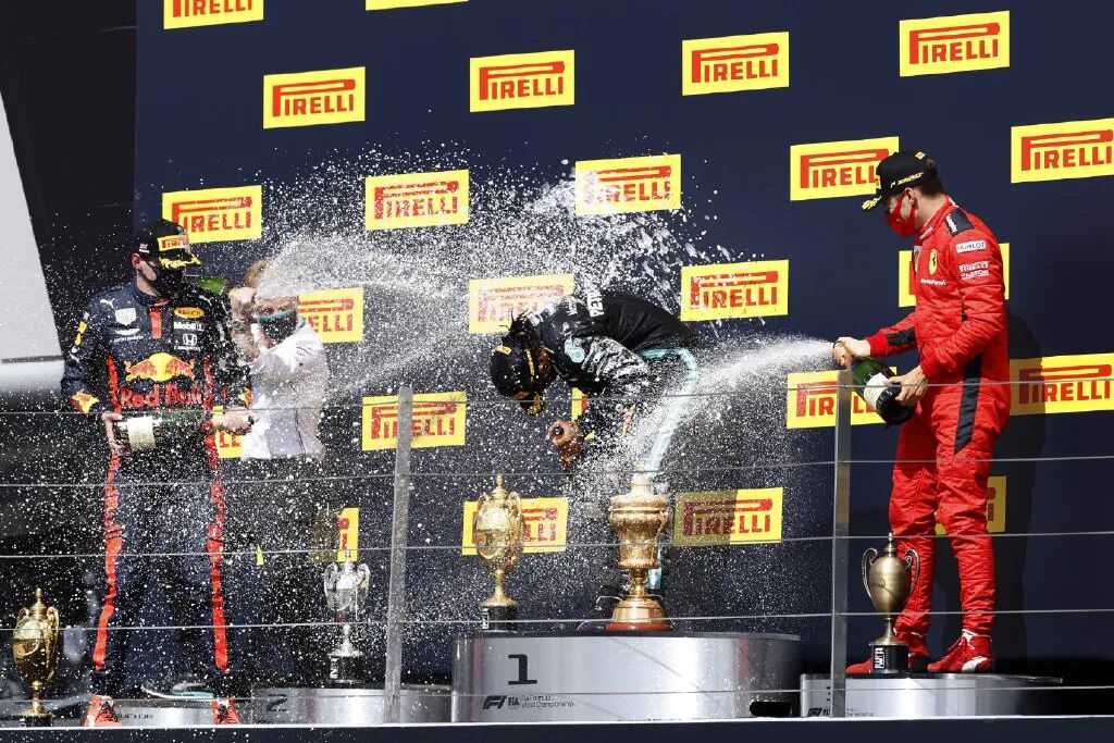 自嘲“既幸运又不幸”的红牛车手维斯塔潘在博塔斯爆胎之后上到第二,但他没选择留在场上而是返回维修区换上软胎追逐最快单圈,汉密尔顿爆胎后,荷兰人尽管飞速迫近,但还是没能从开着“三轮车”冲线的卫冕冠军手中抢下本站比赛的胜利,与大好机会擦肩而过。法拉利车手夏尔·勒克莱尔在本站迎来了一场艰苦的比赛,一直守在第四名的勒克莱尔幸运地站上了颁奖台的最后一位。而勒克莱尔的队友塞巴斯蒂安·维特尔从首节自由练习开始就问题缠身,直到正赛中他都无法顺利发挥,不过他却在最后关头挡下了博塔斯,守下了积分区的最后一分。赛后,博塔斯和汉密尔顿之间的分差已被瞬间拉大至30分。