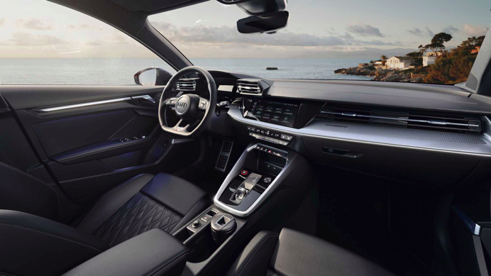 内饰一直是奥迪的强项,四环品牌这次在新S3上主打科技+运动的路线。包裹性十足的运动座椅和带换挡拨片的三辐式平底运动方向盘做足运动车型的本分。10.25英寸全液晶仪表盘搭配10.1英寸中控触摸屏以及拨杆式电子换挡机构则营造了满满的科技感。考虑到S3是一辆兼顾运动和实用的小钢炮,奥迪在科技配置上的诚意绝对是S3的加分项。    .png)