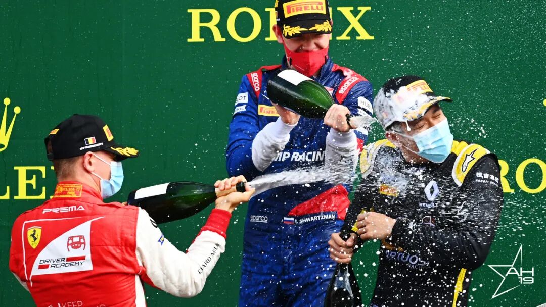 F2斯帕站,代表UNI-Virtuosi Racing车队出战的中国车手周冠宇在F2之旅中再添季军佳绩。主赛阶段,Hitech Grand Prix车手Nikita Mazepin一度凭借“Undercut”超过杆位发车的日本车手角田裕毅,比赛后段面对角田裕毅的进攻俄罗斯人亦是寸步不让。但凶悍的防守也让Mazepin吃到了5秒罚时,尽管紧追在后的角田裕毅以第二名冲线,但这张罚单还是足以让他和Mazepin对调名次拿下自己的F2第二胜,Prema Racing的Mick Schumacher在周六的比赛中拿下季军。