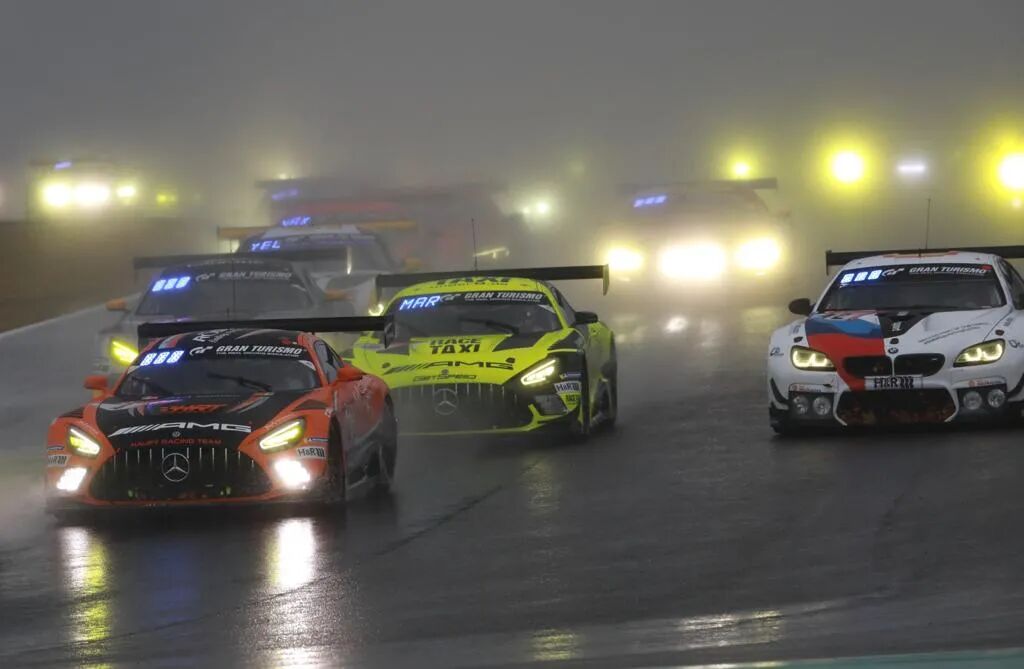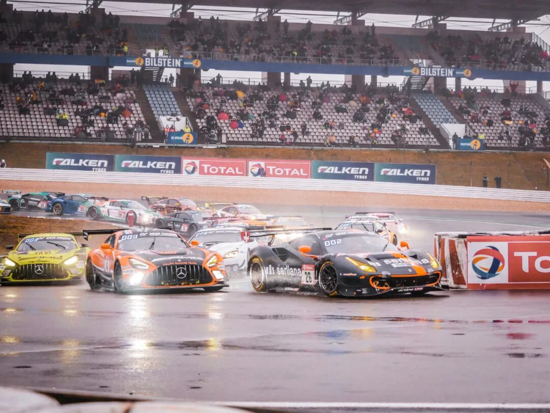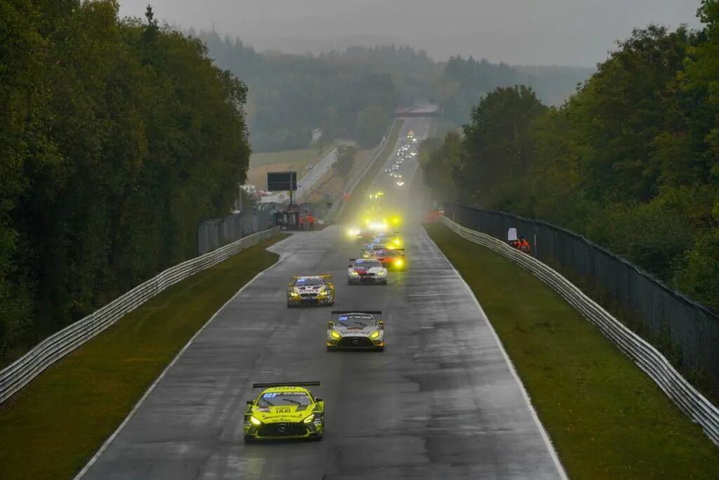 竞争初期,领跑的主动权仍掌握在AMG阵营手中,Haupt Racing team和GetSpeed Performance两支车队的主力车组都曾在比赛中领先。但入夜以后,分属两支车队的9号和4号梅赛德斯-AMG GT3 EVO先后遭遇失控撞车,退出了冠军争夺,奥迪军团就此接替全场前三。但恶劣的视线和天气条件让场上车手极为难过,受Audi Sport官方支持的几支车组中同样险象环生,赛会决定出示红旗暂停赛事。