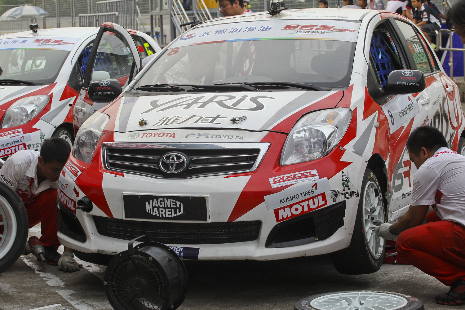 然而,在经过了排位赛的角逐后,广汽丰田雅力士车队的万金存、刘洋和张汉标分列第五至第七位。面对对手的强势包揽前三,广汽丰田雅力士车队身上的压力一下变得重了不少。对此,几位车手和车队经理陈毅平在赛后都积极研究数据,并且提前为周日的决赛制订策略。众所周知,珠海国际赛车场十分考验赛车的动力输出和刹车性能。对此,广汽丰田雅力士车队也做了针对性的调校。在齿比的选择上,车队会根据试车结果进行最佳的挑选,同时根据车手的操控习惯来搭配不同的齿比。另外,在刹车套件不得额外改动的情况下,车队则另辟蹊径,加强了刹车系统的散热性能,减少刹车的热衰退,避免再次遭遇广东肇庆站的事故。