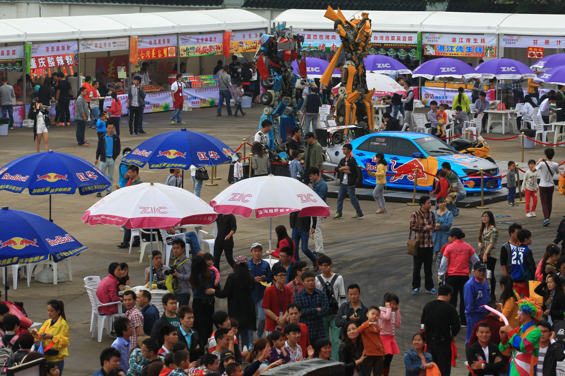 看台上座无虚席、赛道里精彩连连,活动区域也是惊喜不断。红牛的展示区域延续了他们火爆的传统,今年还新设陀螺车飘移体验环节,现场观众只需购买3罐红牛即可参加“红牛陀螺赛车大奖赛”,在全新的迷你赛道上体验一把飘移的乐趣,现场更有美女模特和红牛方程式赛车展示。