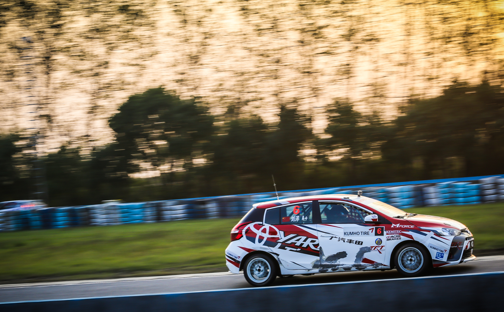 在上一场贵阳的比赛中,中国杯发生了一些碰撞,刘毅锋向记者介绍:“现在可以看到,我们的赛车部件已经全部换新。毕竟是伤到了车的筋骨,车队做了很多努力来抢修。”车手陈沪平也表示,背靠背的两站比赛,时间上比较赶,他表示“我赛车的后半部分已经修好了,前半部分还需要一些调整。所以今天试车我有一种如履薄冰的感觉。”相信作为实力强大的厂商车队,广汽丰田YARiS L致炫车队的赛车可以在周末之前整装待发,对颁奖台再次发起猛烈的冲击。