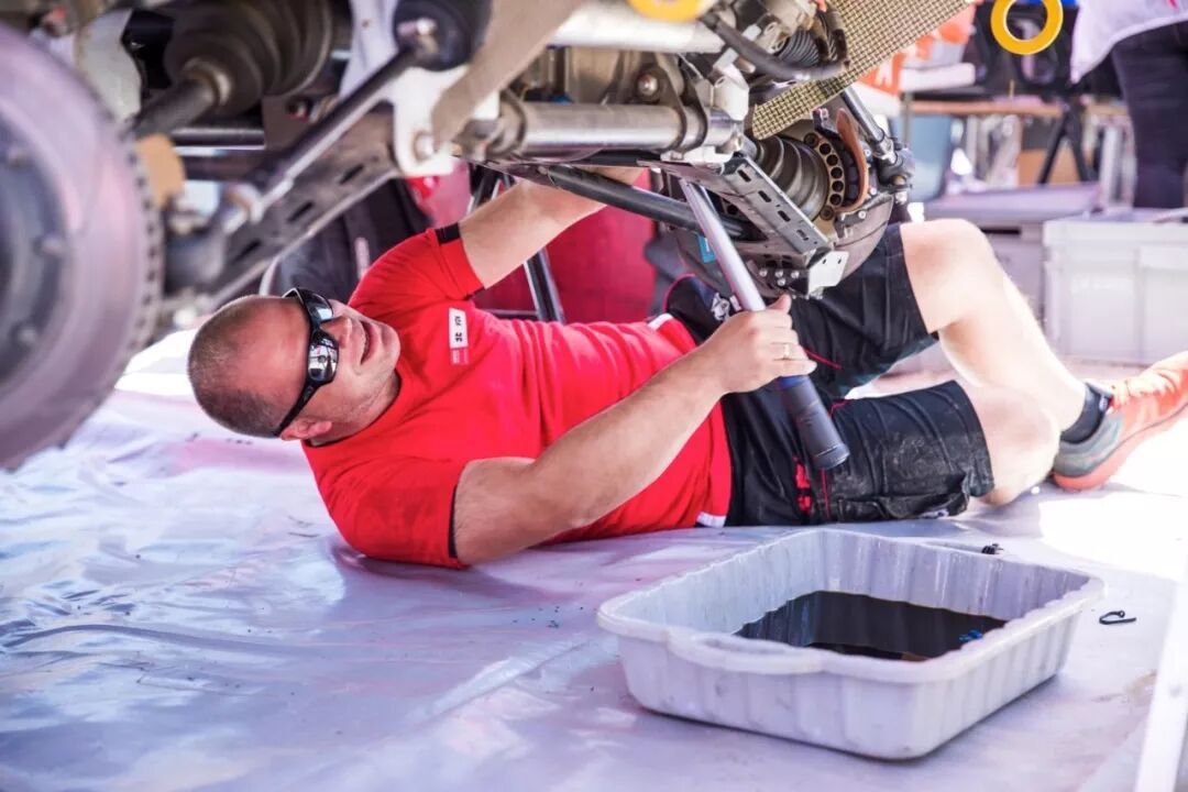 中国环塔拉力赛作为东方达喀尔,赛事水平一年比一年水涨船高,在今年这个号称史上最难的“环塔”中,环绕了100%的塔克拉玛干,总里程5000多km,包含沙漠、戈壁、浮土等特殊赛段2500多km。很多人认为,北京®越野世家车队作为两度冠军,再下一城是理所应当的事,但在开赛之前,又有谁能预测到它能一路领跑呢?没有谁是常胜将军,克里斯蒂安赛后也说过,为了蝉联冠军,整个车队、每个车手、每位后勤官、所有技师都倾注了大量的心血,所谓“台上一分钟,台下十年功”,正是如此。