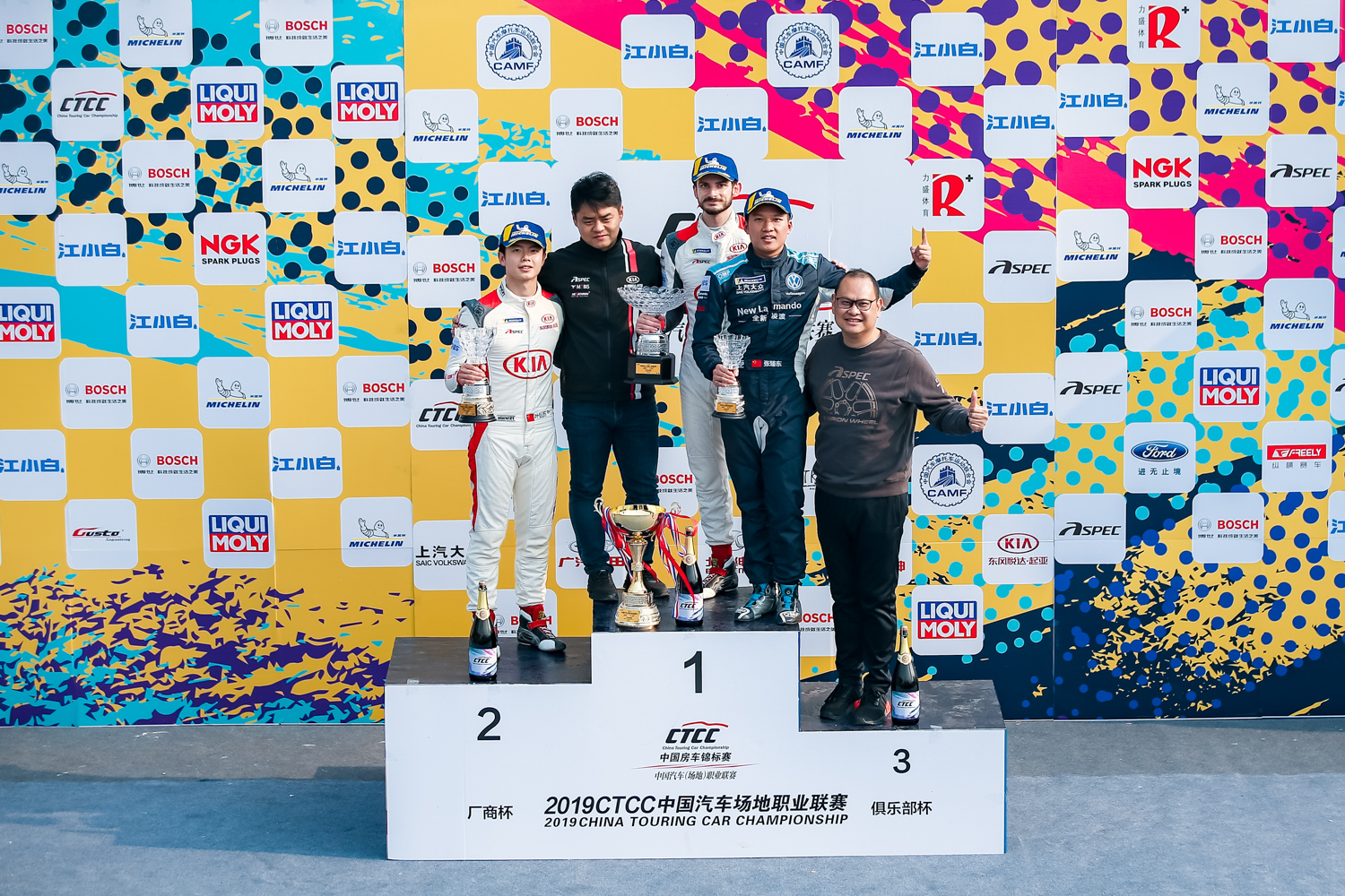 12月14日,CTCC中国汽车场地职业联赛收官战于武汉体育中心街道赛道迎来了首个决赛日的较量。在超级杯第一回合决赛12圈的较量中,东风悦达起亚车队亚历克斯·范特拿(Alex Fontana)凭借强势发车直取赛季首胜,他的队友叶弘历在一场恶战中守住了第二名,上汽大众333车队张臻东收获第三,东风悦达起亚车队夺得本回合厂商杯,进一步巩固了积分榜上的领先优势。