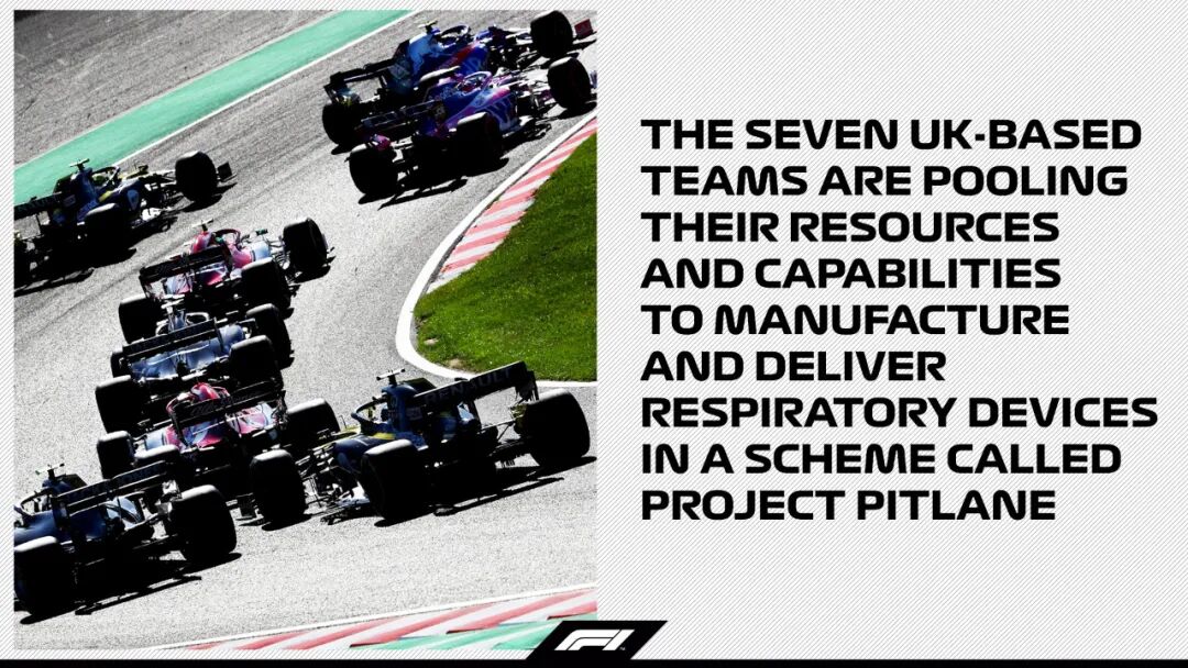 为应对日渐严峻的新冠肺炎疫情,梅赛德斯、红牛、雷诺、迈凯伦、哈斯、赛点及威廉姆斯七支总部位于英国的车队积极响应政府呼吁,共同启动了“维修区项目”(Project Pitlane)抗击灾难。七支F1车队将集中资源及所长,尤其发挥在迅速设计、原型制作、测试和熟练装配方面的优势,协助生产呼吸设备支援前线。赛历方面阿塞拜疆大奖赛成为了又一个延期的分站,分站的推迟大概率会在接下来的一段时间中继续出现,按照目前的发展方向,F1采取类似WEC和FE的跨年赛历不无可能。