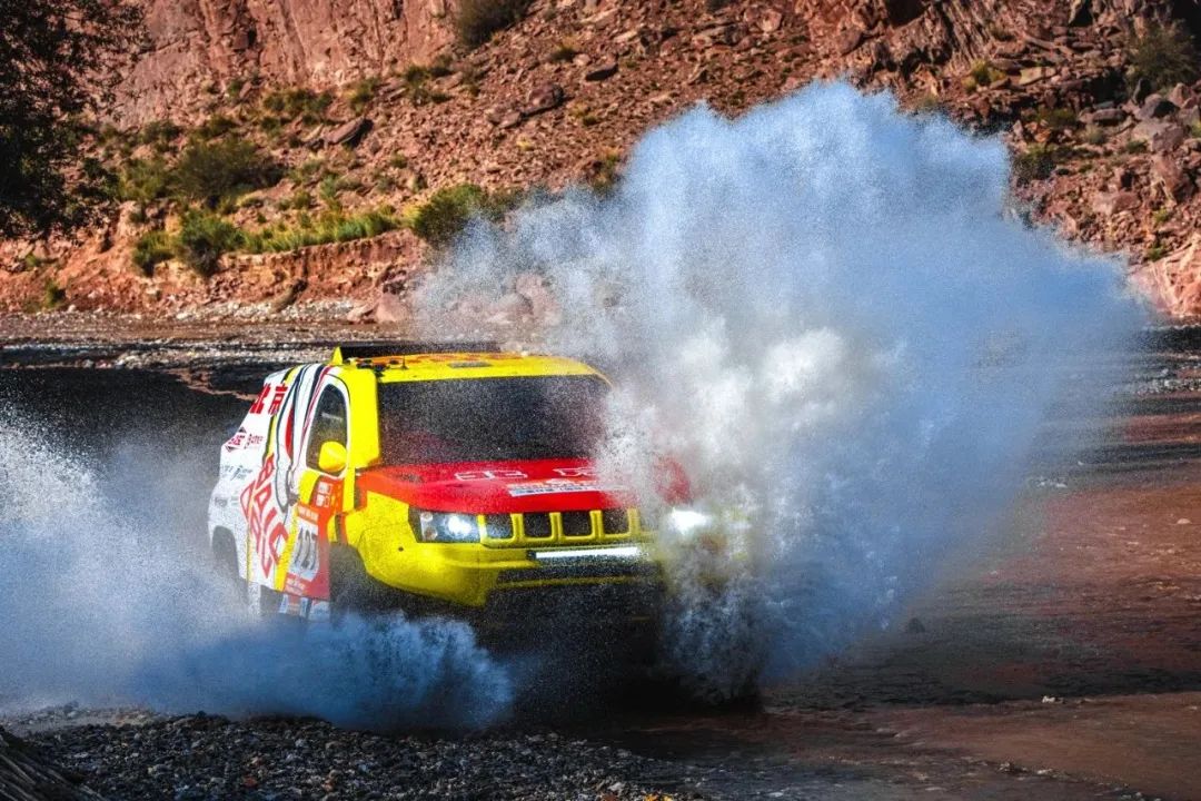 今天在第一位发车的102号车组刘彦贵/陈峰尽管在路上经历了两次爆胎的情况,但在齐心协力的配合下,最终102号斩获组别第一、全场第三!刘彦贵表示:“比赛开始就要蹚水,估计可能走了20公里水路,感觉像在东川。之后就很长时间在峡谷的石缝里驾驶,路上的石头比较尖锐,导致我们的赛车在途中爆了两条胎。总的说来今天的地形比昨天还要难,既包含了昨天的雨天路滑,赛道上还多了很多石头,因此我们要好好把控好节奏。此外,我的领航员陈峰也非常给力,和我一起很快换好了轮胎,幸而没有丢失多少时间。”