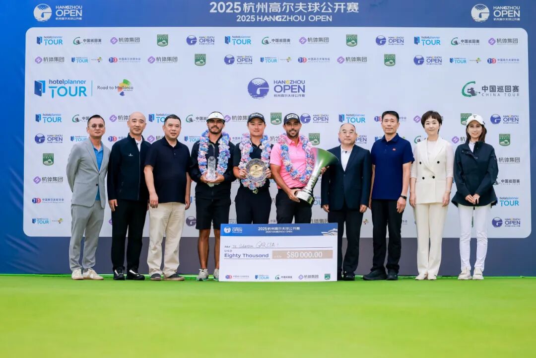 随着冠军的产生,组委会在杭州西湖高尔夫俱乐部举行了隆重的颁奖典礼。中国高尔夫球协会副主席田晓君,杭州市体育局副局长吴璐琪,杭州市商旅集团(市运河集团)副总经理、杭州市体育产业发展集团董事长杜梦菲,杭州之江国家旅游度假区管理委员会副主任董威,中国高尔夫球协会男子职业赛事部部长李今亮,欧巡赛集团中国区总监谢菲和杭州西湖高尔夫俱乐部董事长兼总经理鲍春雷等领导和嘉宾共同出席,见证荣耀加冕。
