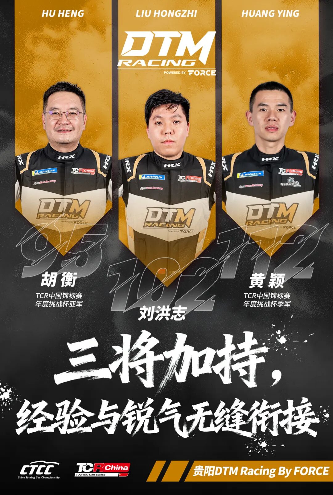 赛季前,车队以“DTM RACING BY FORCE”名义组建联盟,延续刘洪志、黄颖两位功勋车手,引入CTCC冠军车手胡衡组成三车阵容。作为CTCC“二年级生”,车队依托2024赛季TCR中国挑战赛车队杯季军的经验,明确本年度进阶目标。赛前,团队还针对使用了一个赛季的现代伊兰特N TCR赛车进行优化调校,期待在接下来的赛季中不断拼搏,持续蜕变。