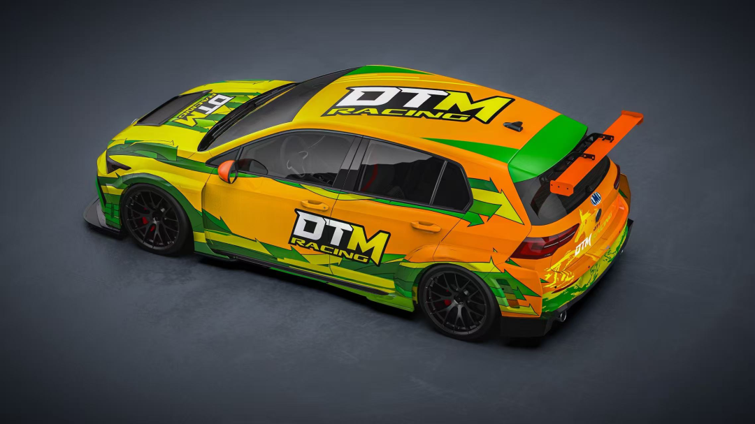 北京DTM Racing选择第八代高尔夫作为赛车基型。在他们看来,高尔夫是“一部很有情怀的车型”,其原厂的运动性能和底盘基础本身就足够强大,为后续改装提供了绝佳的起点。车队的设计理念非常清晰——打造一台小排量前驱国产“小TCR”。为此,他们在新赛季打造了VW GOLF MK8-DTM003-TCS和VW GOLF MK8-DTM001-TC1两款赛车,分别搭载2.0T和1.5T发动机,均采用自主研发的全套CNC底盘件,Ohlins TTX 3way避震器、飞资刹车,并配备Geex碳纤维全套宽体。这套组合在组别中既追求性能上限,也兼顾了自主改装的独特审美。