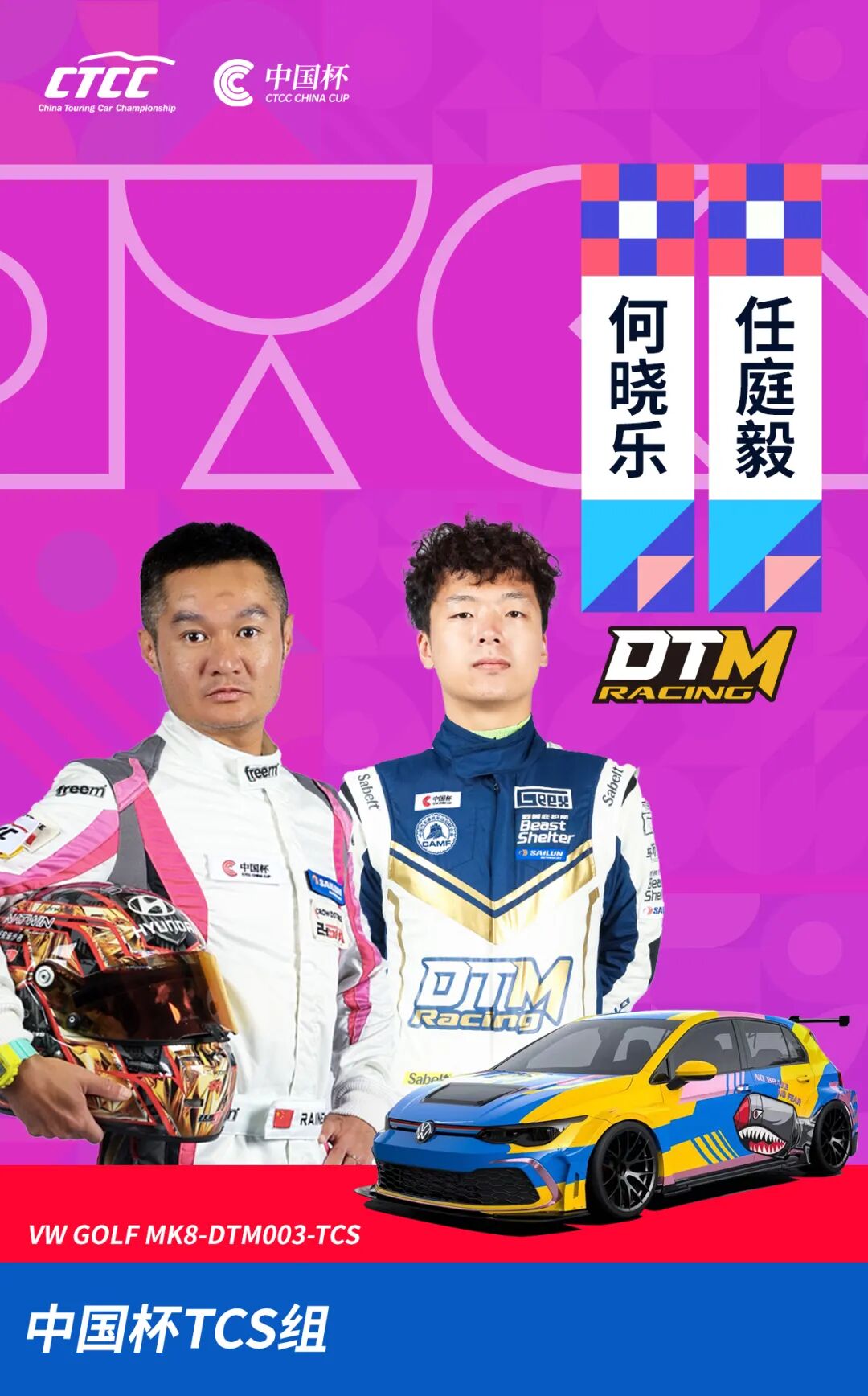 2026赛季,北京DTM Racing派出双车阵容,跨组别参赛。何晓乐与任庭毅将搭档出战TCS组——前者是CTCC冠军老将,经验与圈速兼备;后者是车队王牌车手,2025赛季已在TCS组中积累了宝贵实战数据。